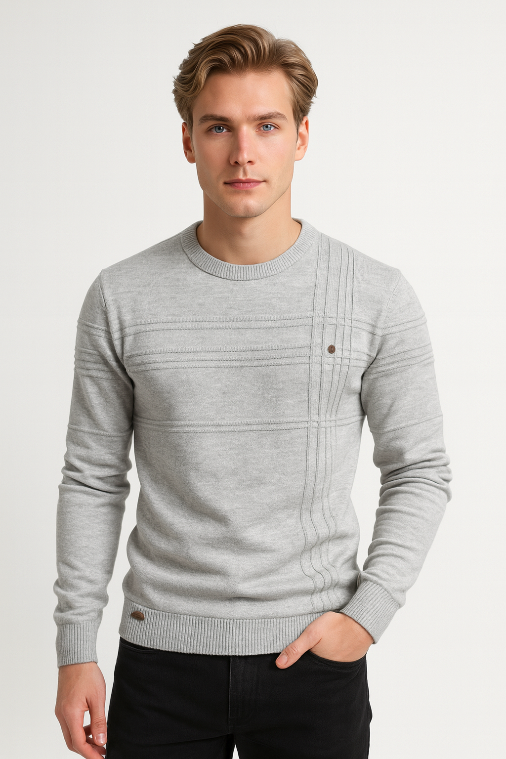 • Details: Subtiel lijnpatroon, ronde hals, zachte afwerking